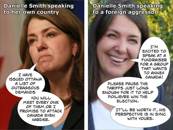 And maybe ask Elections Canada why Danielle Smith is allowed to interfere in the election by asking a foreign adversary like tRUMP for party favours!! POS TRAITOR Danielle Smith, Premier Alberta, says tRUMP should pause tariffs until after election as Poilievre has a [Canada is broken] vision aligned with US [and Russia]