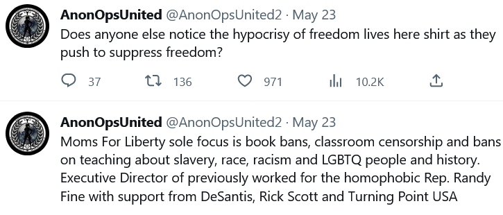 OOOPSIE! Anon took out the site yesterday and still down. https://www.momsforliberty.org/ EDIT: May 26, the site is up but restricting access...