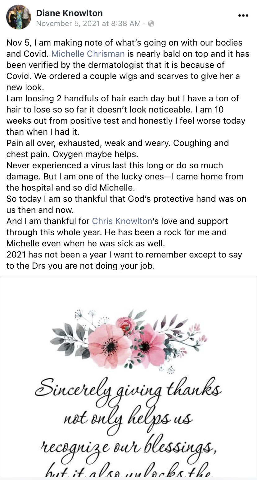 Diane Knowlton, 67, Blue Spring, MO, Suffering Long COVID.