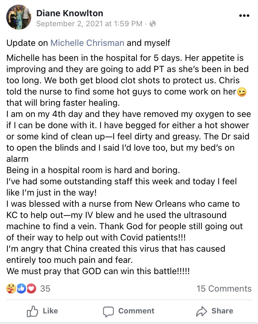She has absolutely no self-awareness. Here she is - severely damaged by COVID, and she is still preaching anti-mask.