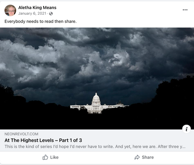 I'll give Aletha a tiny bit of credit. After her bout with Covid she mostly stopped posting the Covid misinformation but she also didn't delete any of her previous Covid posts or advocate for vaccines. So, let's see what Aletha posted to earn herself a spot on SAV!
