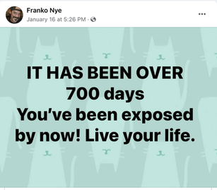 Frank's Covid story went like this. First, he lost his 60-year-old police officer friend David Lear to Covid on January 4, 2022. Frank then went dark on FB around January 17. He popped back on to let us know that he had the flu 😉 and then he got hospitalized on January 30. He advised he'd been out of work due to Covid since January 7, 2022. He still had time to shitpost while hospitalized.