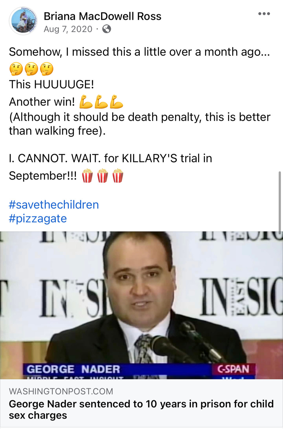 Briana seemed to be down the rabbit hole of Qanon. She shared a ton of "SavetheChildren" posts.