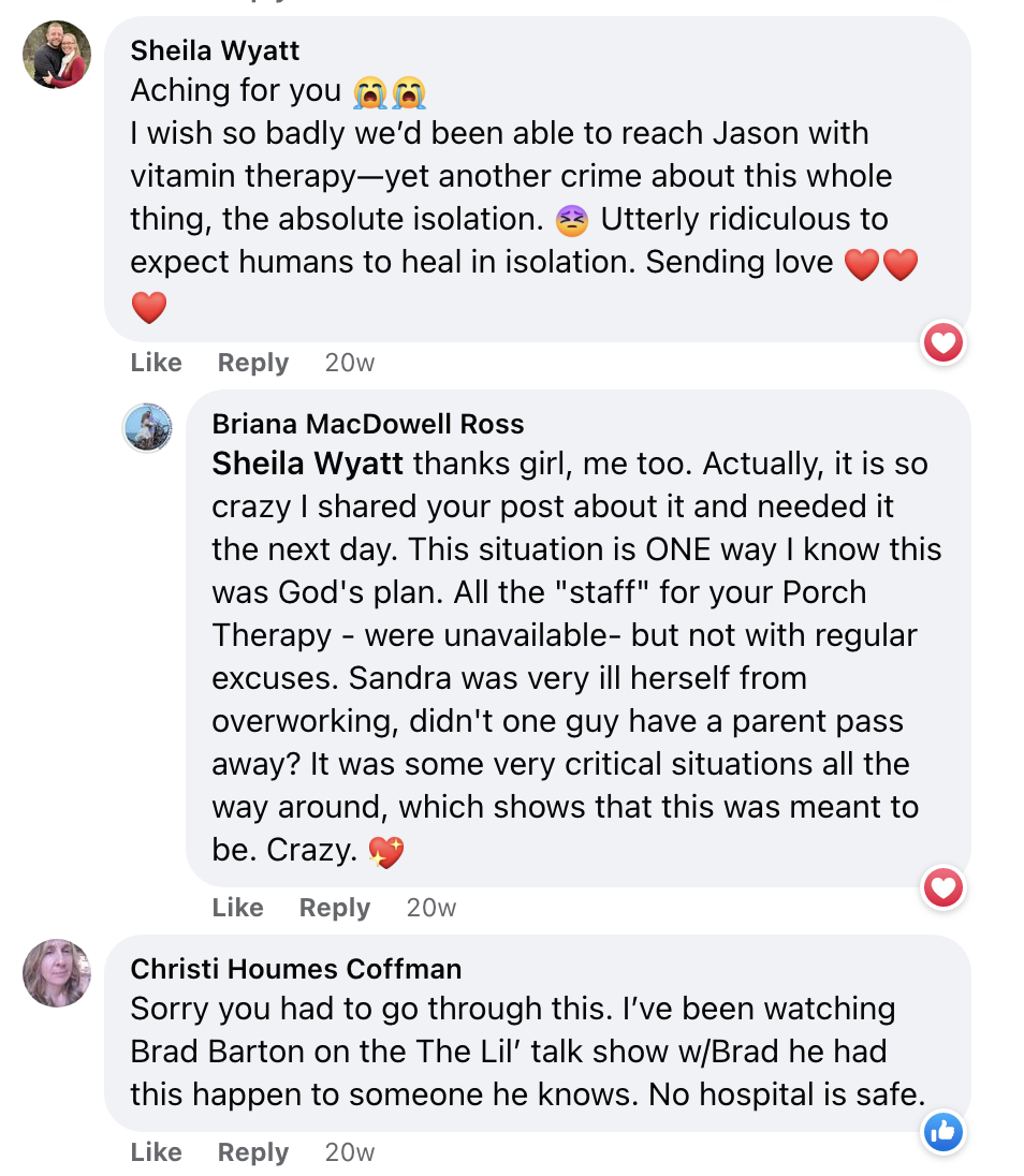 It's only fair that I share a FB message that Briana sent to us this morning. She is claiming that Jason was vaccinated. I've done this long enough to know that if he was in fact vaccinated, she would have screamed that from the rooftops. She publically shares a lot and not once did she mention that. She didn't mention it in her long essay on the "Protocol Kills" blog and not once on FB. With that said, I'll let all of you decide.