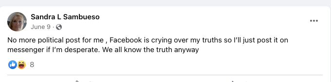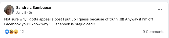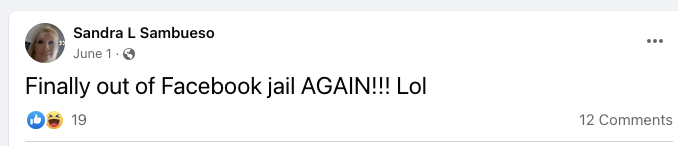 It looks like Sandra may have gotten herself put in Facebook Jail a few times: