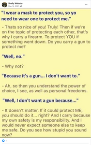 I know that it should not, but the sheer infantilism of Shelly's "thinking" and other AVs continues to astound me. Shelly and her fellow dolts will be remembered in the future as an incredulous footnote in some graduate student's thesis on the Great Pandemic of the early 21st century. Pathetic.